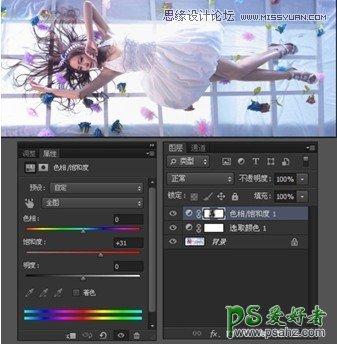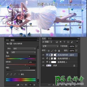 6、由于一次性提高饱和度,容易出现很多颜色噪点,所以分成两次提高。再把上一步饱和度调整层进行复制,提升效果。