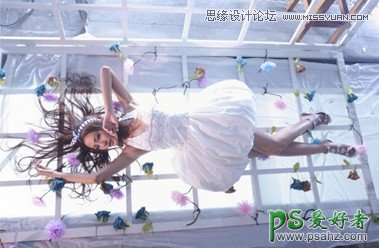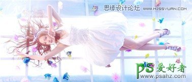 photoshop给唯美模特写真图片调出梦幻唯美肤色效果,此张素材照片颜色清新靓丽,色彩饱和度,明度都略高些,画面反差较低,清新的调子配合模特的装扮,加入炫光做颜色点缀,显得朦胧梦幻,高度的白色显得画面干净清澈。