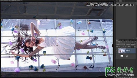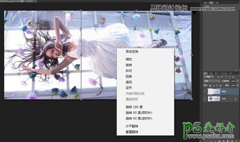 2、由于拍摄角度有所缺陷,用矩形选框工具将模特胸部以下部分进行选取,并复制出来,用自由变换工具调整透视,使其整体统一。