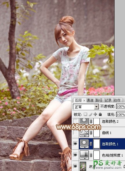 PS美女图片调色教程:给妩媚的街景少女图片调出柔和的粉褐色