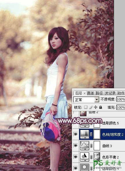 PS美女图片调色教程:给妩媚的街景少女图片调出柔和的粉褐色...