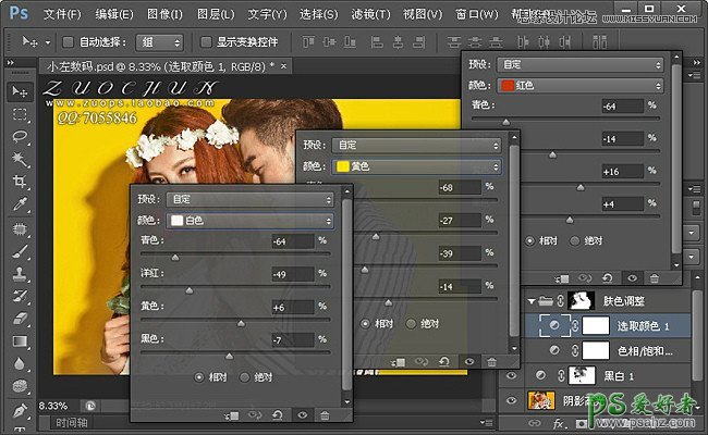 选区颜色:红色(青色-64,洋红-14,黄色+16,黑色+4)