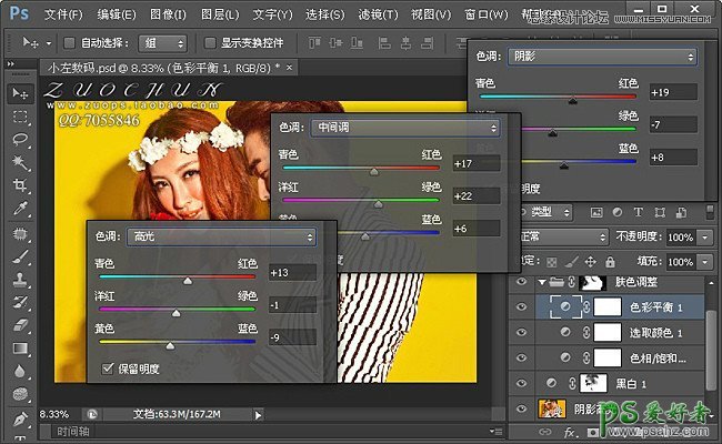 色彩平衡:阴影(红色+19 绿色-7 蓝色+8)