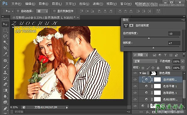 7:稍微降低下皮肤颜色;自然饱和度(自然饱和度-10 饱和度+7)