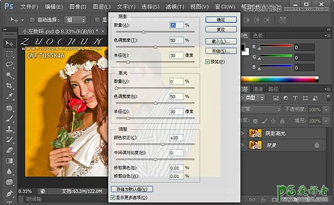 1:复制一层,阴影高光,调整下曝光,把暗部提亮!参数如图。