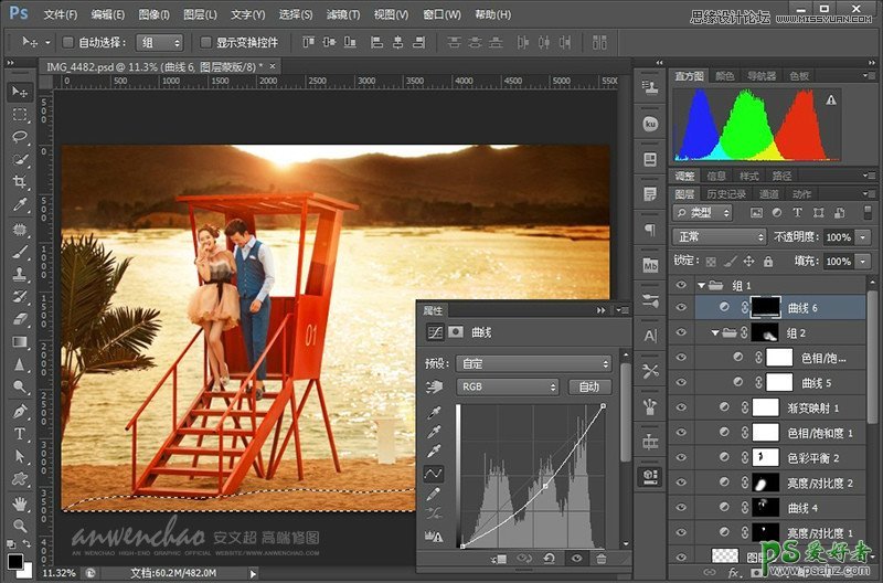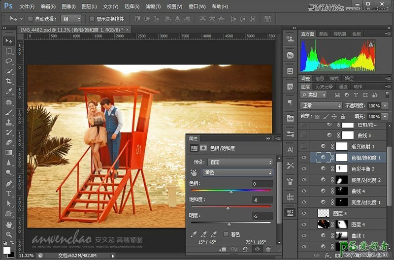 PS摄影后期调色教程:给唯美的影楼婚片调出黄色调日落夕阳景色