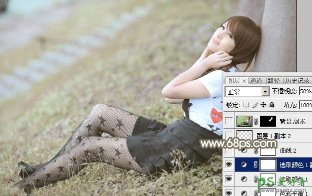 5、按Ctrl + J 把当前可选颜色调整图层复制一层,不透明度改为:50%,效果如下图。