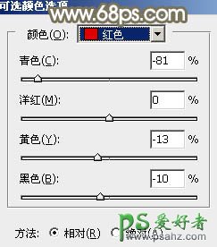 9、创建可选颜色调整图层,对红、黄、白进行调整,参数设置如图24 - 26,确定后按Ctrl + Alt + G 创建剪切蒙版,效果如图27。