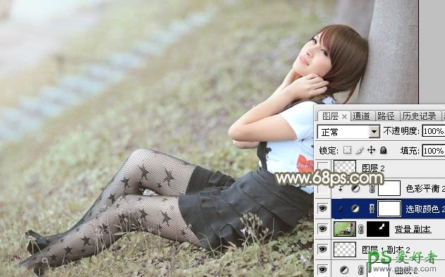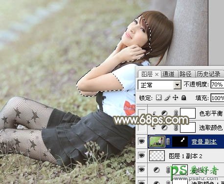 8、把背景图层复制一层,按Ctrl + Shift + ] 置顶,按住Alt键添加图层蒙版,用白色画笔把人物脸部及手臂部分擦出来,如下图。