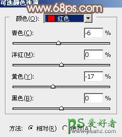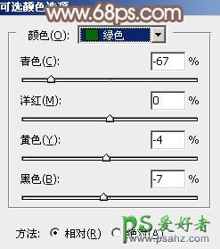 1、打开素材图片,创建可选颜色调整图层,对红、绿、黑进行调整,参数设置如图1 - 3,效果如图4。这一步给图片增加暖色。