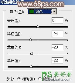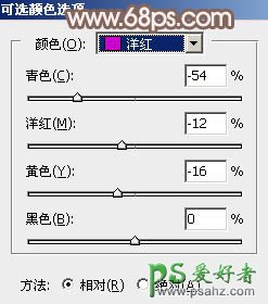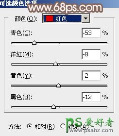 4、创建可选颜色调整图层,对红、黄、绿、洋红、白进行调整,参数设置如图9 - 13,效果如图14。这一步主要把图片中的暖色调淡一点。