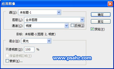 3、转到通道图层,选择明度,做应用图象调整,给图像提亮