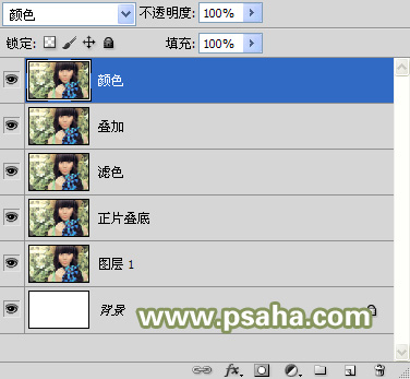 1、将素材图层复制四层,分别做正片叠底-滤色-叠加-颜色