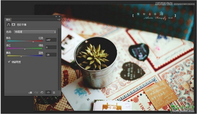接下来是色彩平衡,是我最常用的一步。中间调加红,加黄。