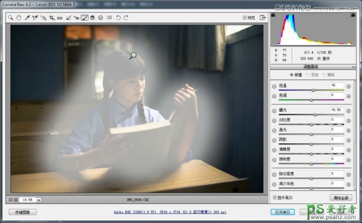 然后再用个ACR的简易蒙版随便涂一涂,加点曝光加点色温,就是要这种暖暖的感觉。
