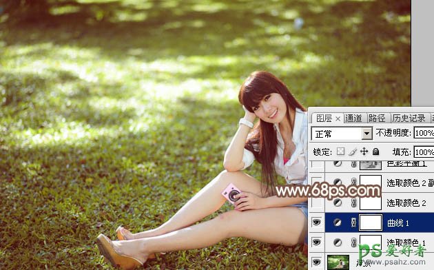 Photoshop给草地上自拍的唯美少女写真照调出阳光淡褐色效果