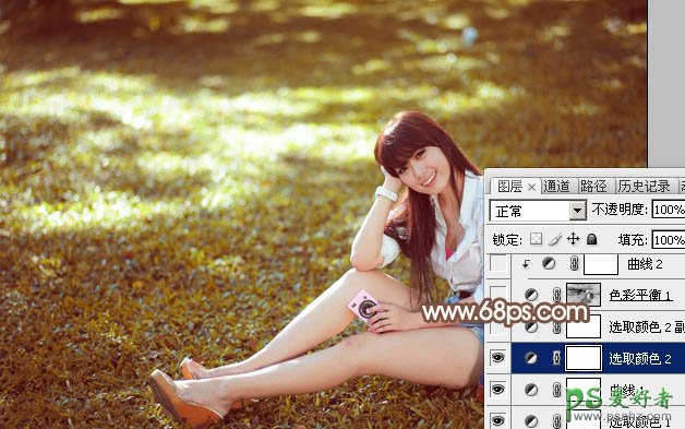 PS美女图片调色实例:给清纯甜美的少女外拍照片调出秋季暖褐...
