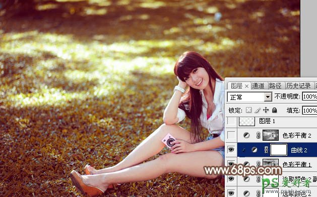 6、创建曲线调整图层,对RGB,绿色通道进行微调,参数设置如图17,确定后按Ctrl + Alt + G 创建剪切蒙版,效果如图18。这一步给图片暗部增加红褐色。