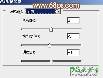 9、创建色相/饱和度调整图层,对全图进行调整,适当降低饱和度,参数及效果如下图。