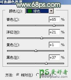 1、打开素材图片,创建可选颜色调整图层,对绿色进行调整,参数及效果如下图。这一步给图片增加绿色。