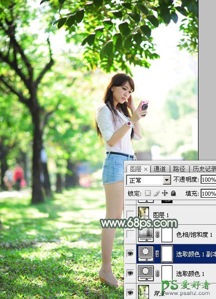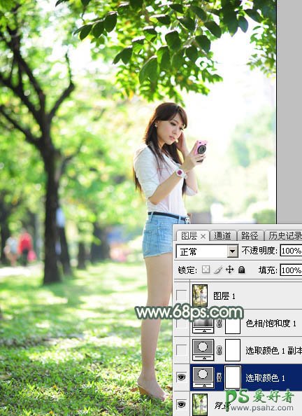 秋景色彩的照片会给人一种温馨,温暖的感觉,今天我们就跟着设计师来学习一篇PS美女图片调色实例:利用PS软件给清纯甜美的少女外拍照片调出秋季暖褐色,喜欢的童鞋们试一下吧! 原图 最终效果 1、打开素材图片,创建可选颜色调整图层,对绿色进行调