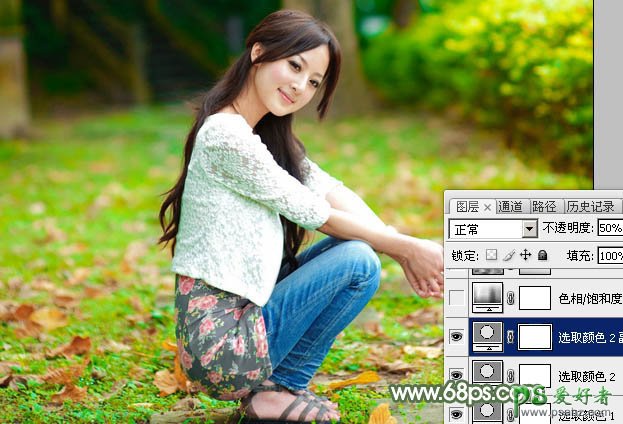 3、按Ctrl + J 把当前可选颜色调整图层复制一层,不透明度改为:50%,效果如下图。