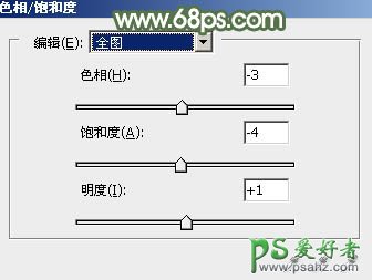 10、创建色相/饱和度调整图层,对全图进行调整,参数及效果如下图。这一步微调全图颜色。