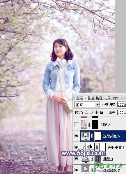 photoshop给春日花景中的青春少女艺术照调出梦幻的粉紫色