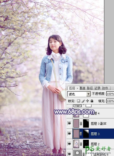 12、新建一个图层,填充紫褐色:#A78897,混合模式改为“滤色”,按住Alt键添加图层蒙版,用白色画笔把右上角部分擦出来,给图片增加高光,效果如下图。