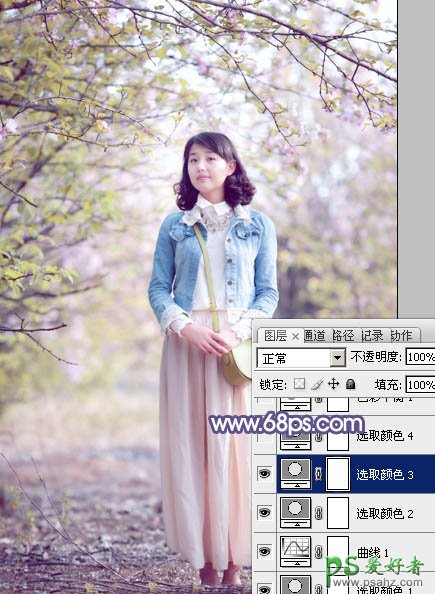 photoshop给春日花景中的青春少女艺术照调出梦幻的粉紫色