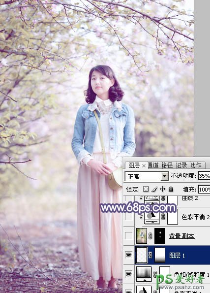 8、按Ctrl + Alt + 2 调出高光选区,新建一个图层填充淡蓝色:#F6F6FA,确定后把不透明度改为:35%,添加图层蒙版,用黑色画笔把底部不需要变亮的部分擦出来,效果如下图。这一步给高光部分增加淡蓝色。