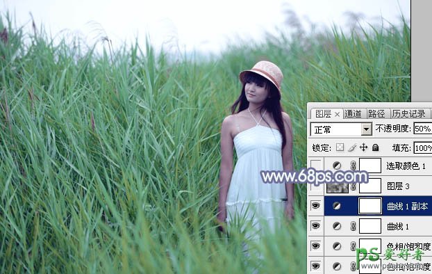 4、按Ctrl + J 把当前曲线调整图层复制一层,不透明度改为:50%,效果如下图。