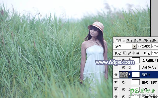 5、新建一个图层,按字母键“D”,把前景背景恢复到默认的黑白,选择菜单:滤镜 > 渲染 > 云彩,确定后把混合模式改为“滤色”,不透明度改为:40%,效果如下图。这一步增加图片亮度。
