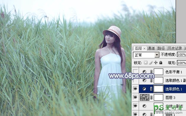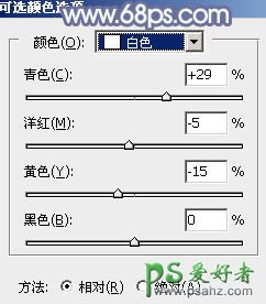 6、创建可选颜色调整图层,对红、黄、绿、白、中性,黑进行调整,参数设置如图11 - 16,效果如图17。这一步主要给图片增加淡黄色及淡青色。
