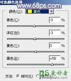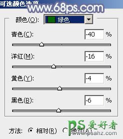 11、创建可选颜色调整图层,对黄,绿,白进行调整,参数设置如图24 - 26,效果如图27。这一步把图片中的暖色稍微调暗一点。