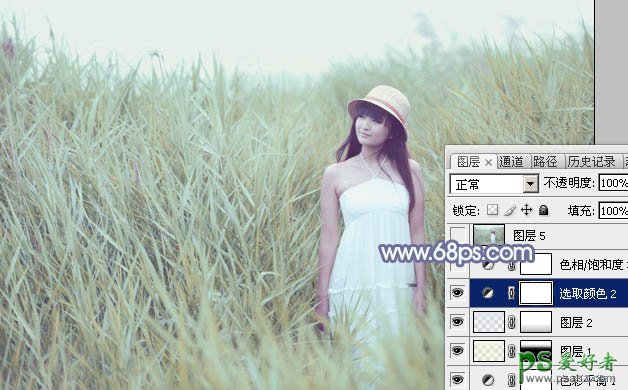 PS给清新可爱的未成年少女艺术照调出唯美的淡调青蓝色效果