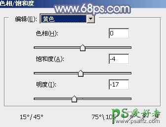 12、创建色相/饱和度调整图层,对黄色,绿色进行调整,参数及效果如下图。这一步给图片增加淡青色。