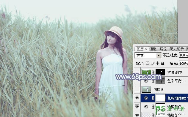 PS给清新可爱的未成年少女艺术照调出唯美的淡调青蓝色效果