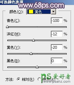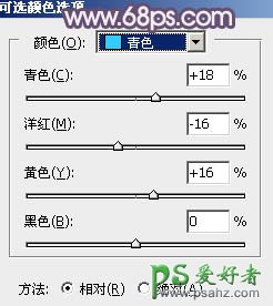 3、创建可选颜色调整图层,对黄、绿、青,白进行调整,参数设置如图5 - 8,效果如图9。这一步给图片增加橙黄色。