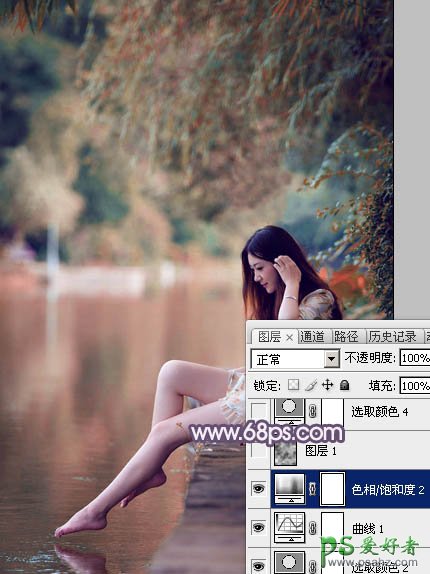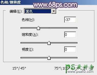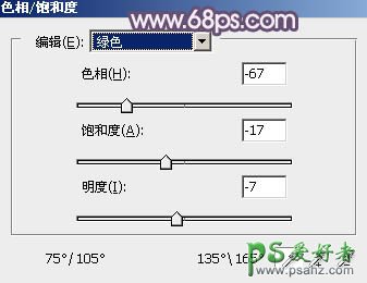 5、创建色相/饱和度调整图层,对黄色,绿色进行调整,参数及效果如下图。这一步快速把图片中的黄色转为红褐色。