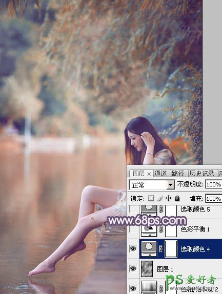 photoshop给清新玉足少女写真照调出漂亮的暖紫色效果