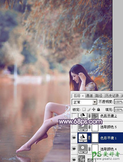 photoshop给清新玉足少女写真照调出漂亮的暖紫色效果