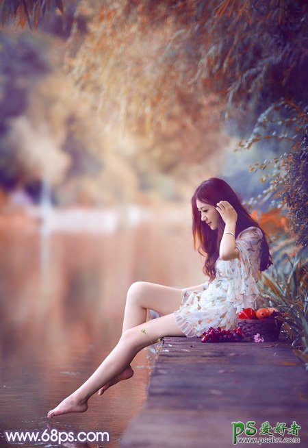 ,photoshop给清新玉足少女写真照调出漂亮的暖紫色效果。