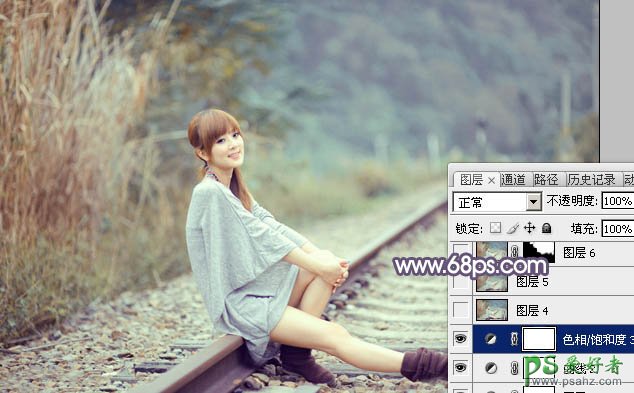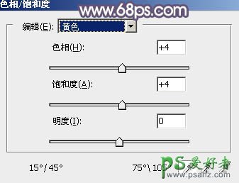 12、创建色相/饱和度调整图层,对黄色进行微调,参数及效果如下图。这一步给图片增加淡黄色。