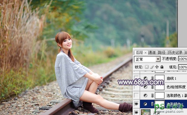 Photoshop给性感的美腿少女户外写真照调出柔美黄色调效果