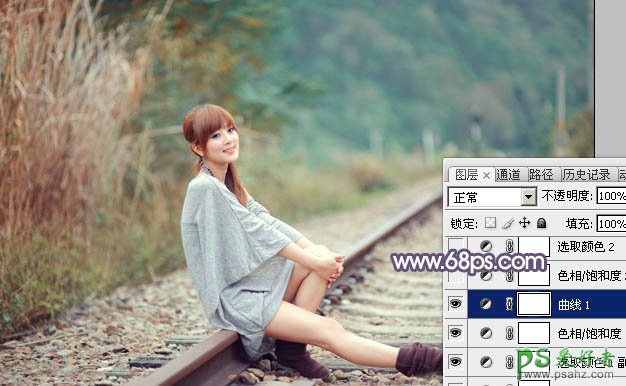 PS果子mm调色教程:给清纯的果子mm唯美写真照调出粉调蓝黄色