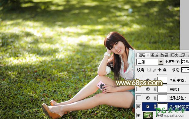 Photoshop给性感的美腿少女户外写真照调出柔美黄色调效果