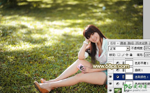 PS果子mm调色教程:给清纯的果子mm唯美写真照调出粉调蓝黄色...