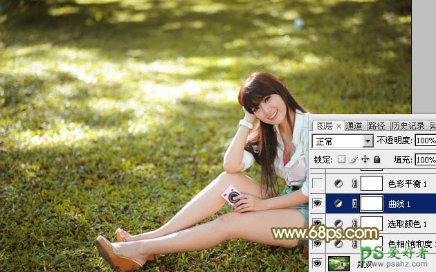 Photoshop给性感的美腿少女户外写真照调出柔美黄色调效果