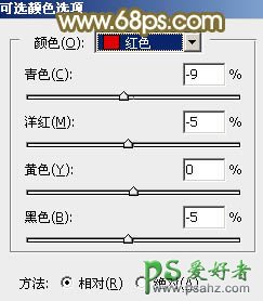 10、创建可选颜色调整图层,对红、黄,白进行调整,参数设置如图34 - 36,效果如图37。这一步把图片中的红色稍微调淡。